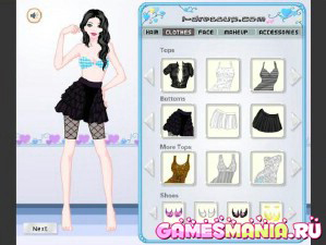 В этой игре Вам предстоит поработать над созданием нового стиля для модели Ирэн, перед выходом на подиум. Она очень волнуется, ведь это первый ее показ мод. Помогите ей подобрать новую прическу, сделать восхитительный макияж с помощью помады, карандаша, теней, пудры. И конечно же платье от выдающихся модельеров. Управление игрой происходит с помощью мышки. Щелкните по выбранной Вами позиции и она сразу же окажется на модели. Результат после завершения нового образа Ирэн можно увидеть нажав на нижнюю кнопку со стрелкой, а затем на кнопку Next.